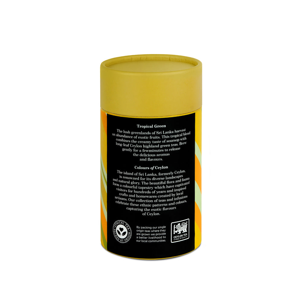 The lush greenlands of Sri Lanka harvest an abundance of exotic fruits. This tropical blend combines the creamy taste of soursop with long-leaf Ceylon highland green teas. Brew gently for a few minutes to release the delicious aromas and flavours.. Grade of Tea Young Hyson. Region of Tea Kandy.