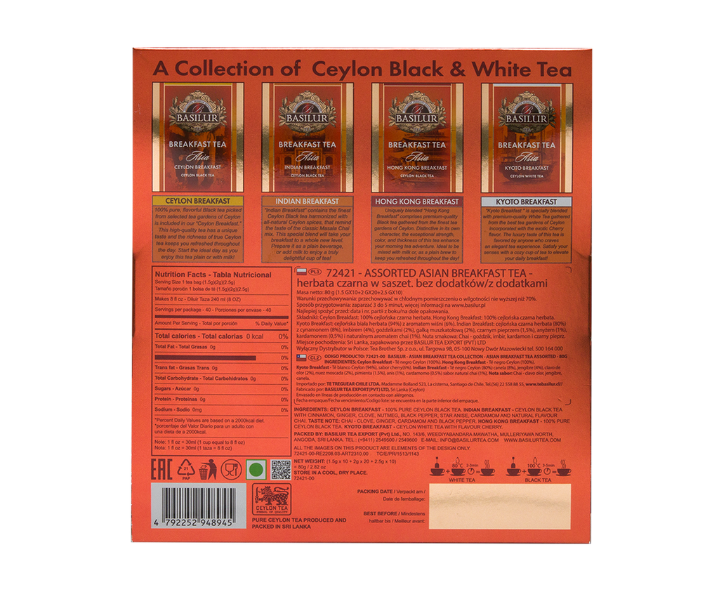 Basilur Asia Breakfast Assorted Tea, 40 Count Tea Bags